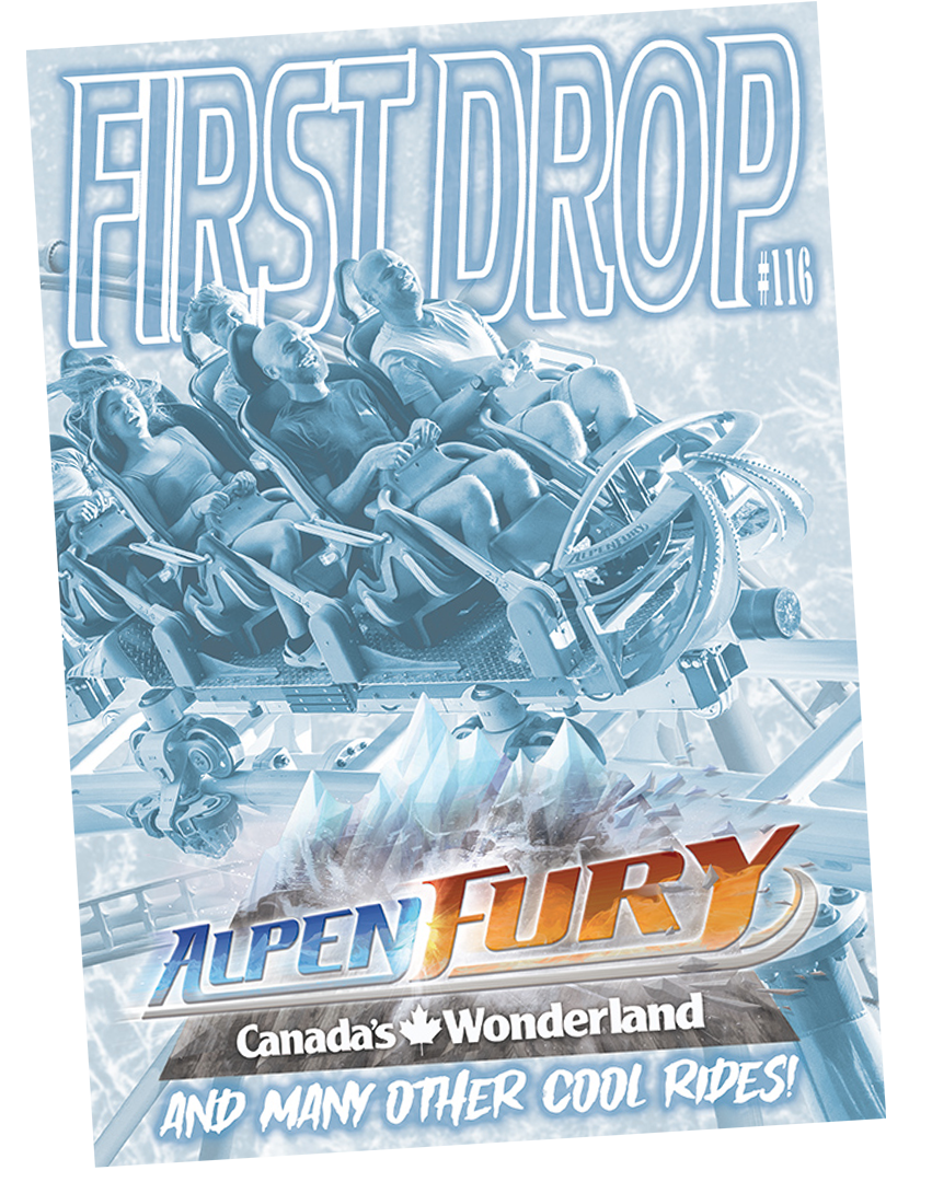 Over the past thirty plus years, First Drop has often been first with the big coaster and park news. To name a few examples, First Drop published the first ever drawing of Diamondback, the B&M Hyper Coaster at Kings Island. We also had the first ever drawing of OzIris at Parc Astérix and were the first to announce the Helix coaster at Liseberg.